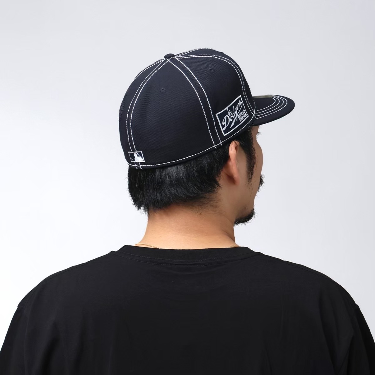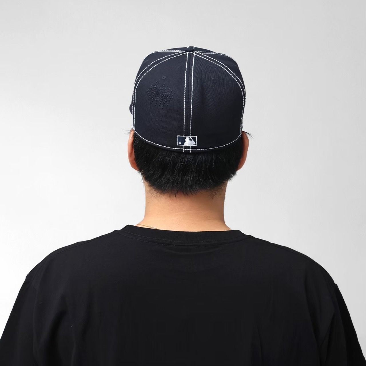 ツバやパネルのステッチをホワイトで切り替え、コントラストの効いたデザインに仕上げたMFC STORE CUSTOM COLLECTION NEW ERA 59FIFTY。